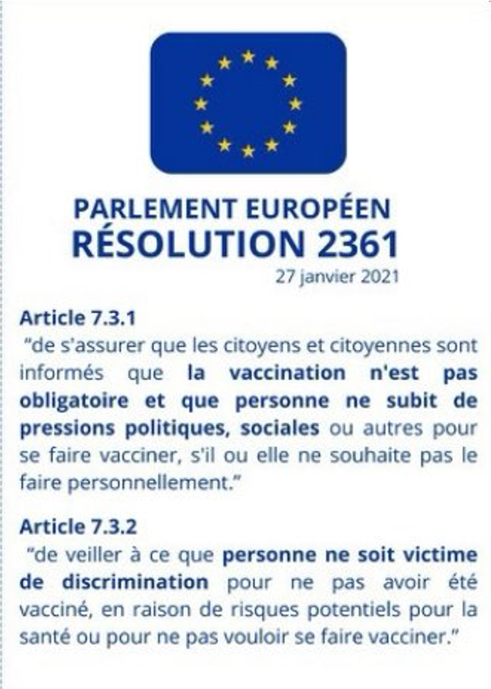 3. La résolution 2361 du parlement européen, et ses articles 7.3.1, et 7.3.2.